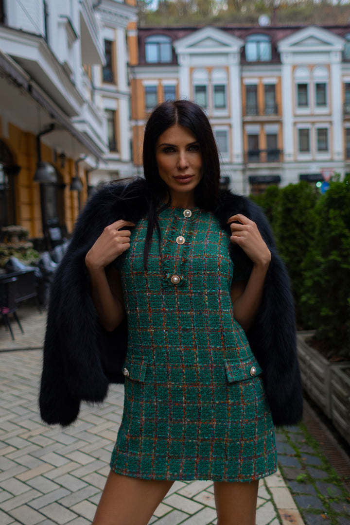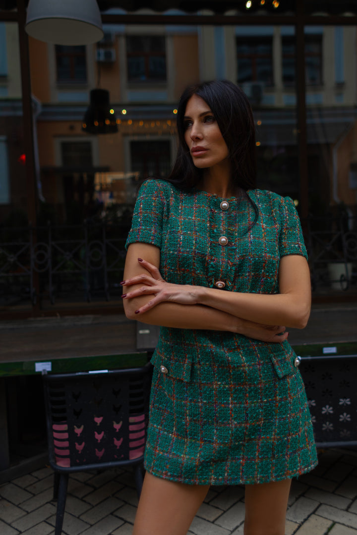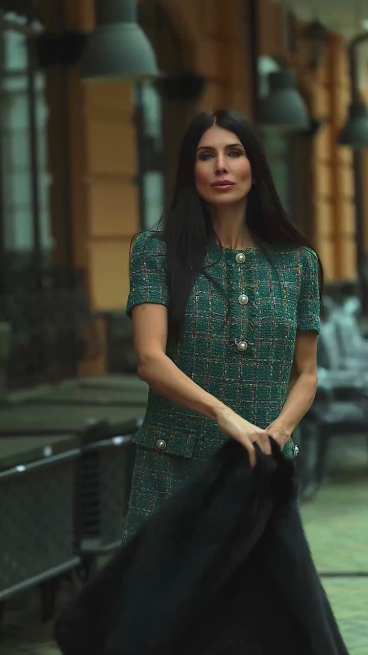 Classic Green Tweed Dress – Chanel Style (100% Cotton, Italy)